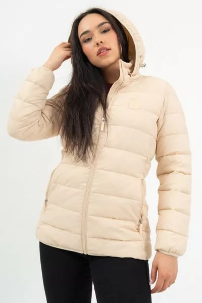 női steppelt vékony dzseki - enyhén karcsúsított fazon - kapucni lecipzározható - gumicímkékkel díszítve