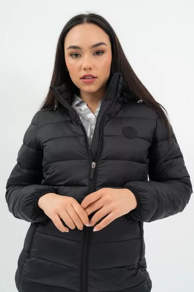 női steppelt vékony dzseki - enyhén karcsúsított fazon - kapucni lecipzározható - gumicímkékkel díszítve