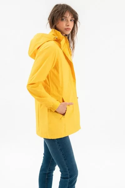 női széldzseki vízlepergető anyagból - lecipzározható kapucnival - ujja alja tépőzárral állítható - gumicímkével díszítve
