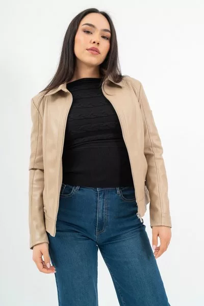 női műbőr dzseki - karcsúsított fazon - fém címkével díszítve