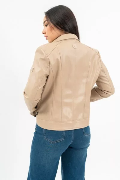 női műbőr dzseki - karcsúsított fazon - fém címkével díszítve
