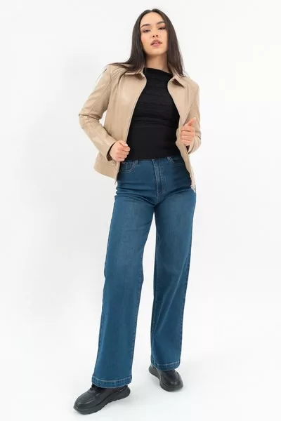 női műbőr dzseki - karcsúsított fazon - fém címkével díszítve