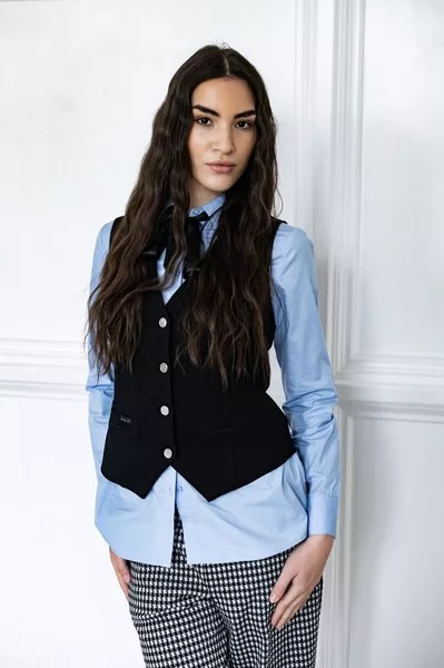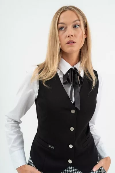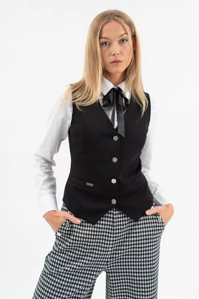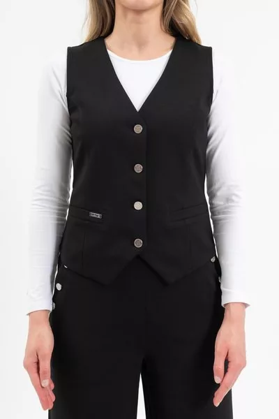 női mellény - karcsúsított fazon - fémcímkével díszítve