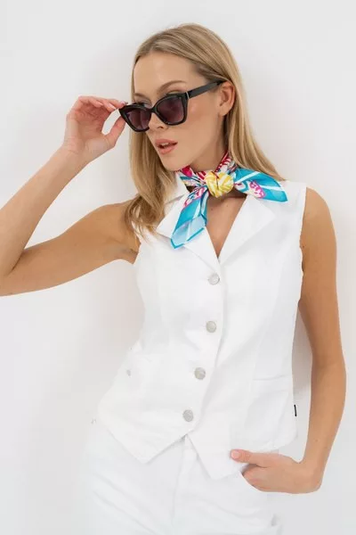 női farmermellénykarcsúsított fazon - fémcímkékkel díszítve<br> <br> <p>