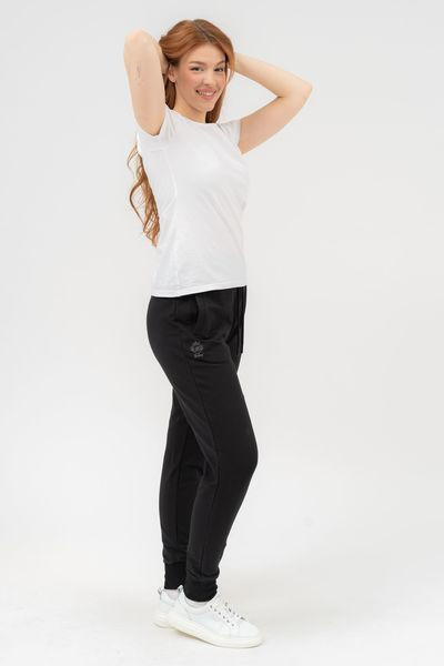 női szabadidőnadrág rugalmas anyagból - alapanyaga belül bolyhozatlan - alja passzés - hímzett mintával díszítve