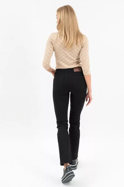 női straight farmernadrág - egyenes szabású - normál derékmagasság - push-up fazon - fém és műbőr címkével díszítve