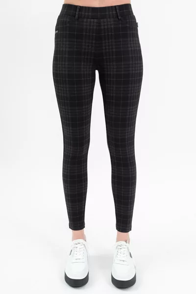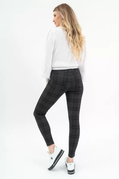 Női leggings rugalmas anyagból. Fémcímkével díszítve.