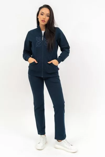 női szabadidőnadrág - rugalmas anyagból - alapanyaga belül bolyhozatlan - alja egyenes szárú - hímzett mintával díszítve
