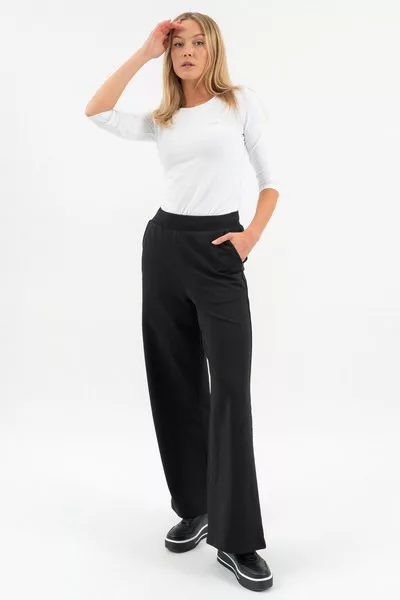 női bő szárú szabadidőnadrág - rugalmas anyagból - alapanyaga belül bolyhozatlan - hímzett mintával díszítve - passzoló felsőrész: 20220930-002