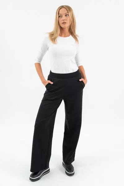 női bő szárú szabadidőnadrág - rugalmas anyagból - alapanyaga belül bolyhozatlan - hímzett mintával díszítve - passzoló felsőrész: 20220930-002