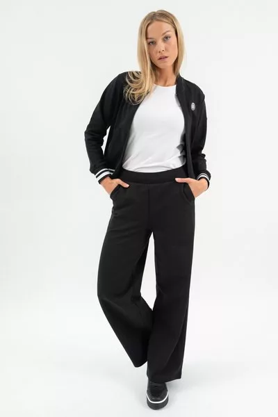 női bő szárú szabadidőnadrág - rugalmas anyagból - alapanyaga belül bolyhozatlan - hímzett mintával díszítve - passzoló felsőrész: 20220930-002