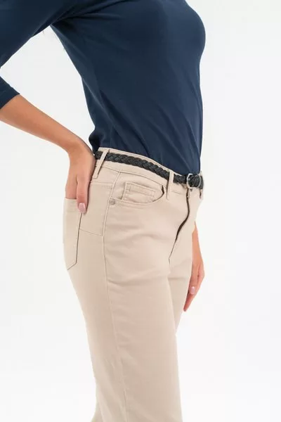 női hosszúnadrág szövött anyagból - szűk fazon - push-up fazon - derekában keskeny fonott övvel - fémcímkével díszítve