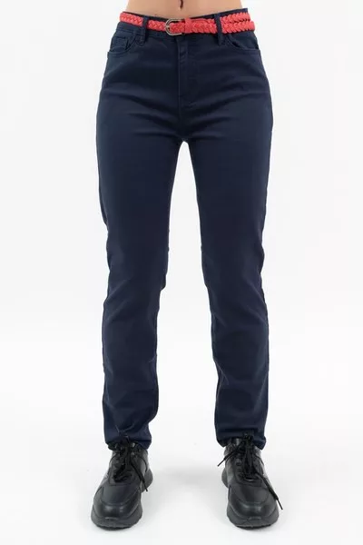 női hosszúnadrág szövött anyagból - szűk fazon - push-up fazon - derekában keskeny fonott övvel - fémcímkével díszítve