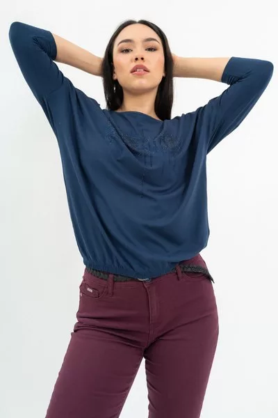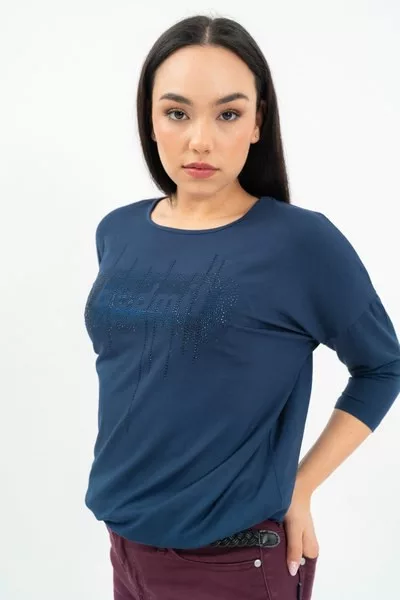női vékony 3/4-es ujjú felső - rugalmas anyagból - lezser fazon - alja gumizott - strasszokkal díszített