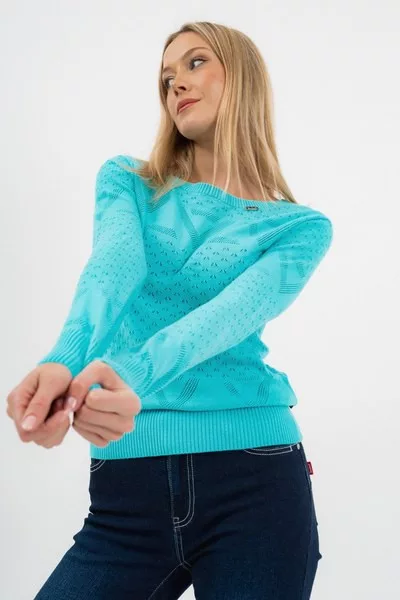 Budmil kötött pulóver - 20050838-002 női pulóver.türkiz színű Budmil női pulóver.