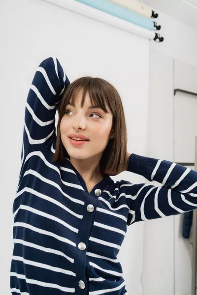 női vékony kötött kardigánkarcsúsított fazon - fémcímkékkel díszítve<br> <br><p>Ez a <strong>női vékony kötött kardigán</strong> könnyed viseletet biztosít a mindennapokra és az átmeneti időszakra. A <strong>karcsúsított fazon</strong> formakövető, mégis kényelmes illeszkedést nyújt, miközben nőies sziluettet ad. A modellt letisztult <strong>fémcímkés díszítés</strong> egészíti ki.</p>