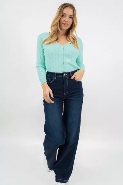 női kötött kardigánrövid, lezser fazon - fémcímkékkel díszítve<br> <br><p>Ez a <strong>női kötött kardigán</strong> rövid, lezser fazonjával kényelmes és modern megjelenést biztosít. A <strong>kötött anyag</strong> kellemes viseletet nyújt a mindennapok során, miközben jól rétegezhető különböző felsők fölé. A modellt letisztult <strong>fémcímkés díszítés</strong> egészíti ki.</p>
