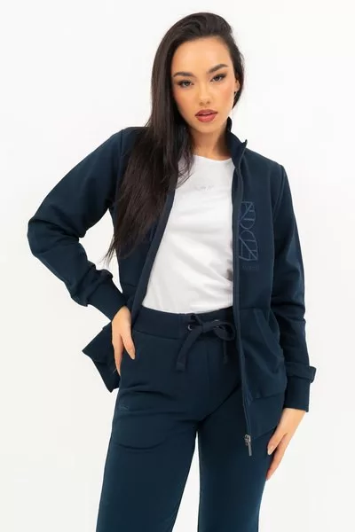 női szabadidőfelső rugalmas anyagból - alapanyaga belül bolyhozatlan - hímzéssel díszítve