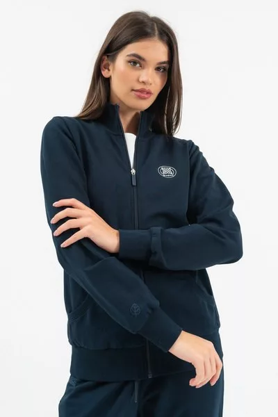 női szabadidőfelső rugalmas anyagból - alapanyaga belül bolyhozatlan - nyomott mintával díszítve