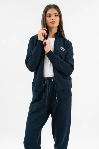 női szabadidőfelső rugalmas anyagból - alapanyaga belül bolyhozatlan - nyomott mintával díszítve
