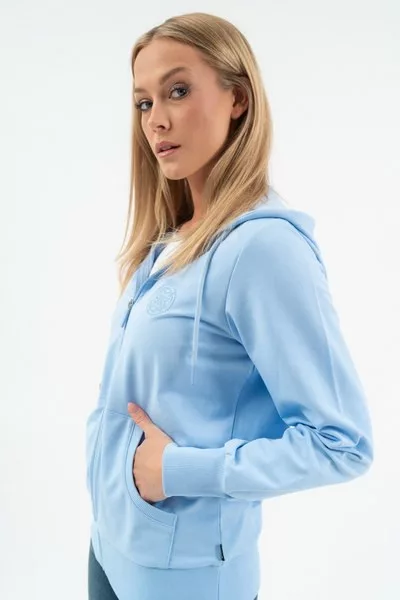 női kapucnis szabadidőfelső - rugalmas anyagból - alapanyaga belül bolyhozatlan - hímzett mintával díszítve