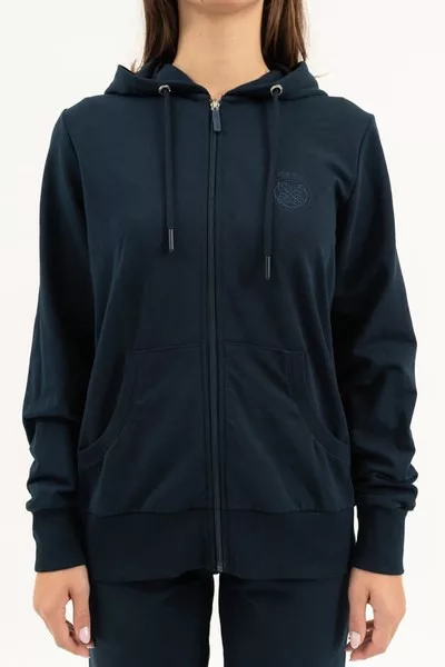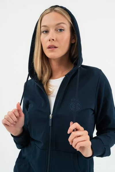 női kapucnis szabadidőfelső - rugalmas anyagból - alapanyaga belül bolyhozatlan - hímzett mintával díszítve