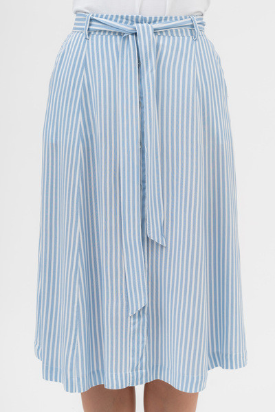 Női szoknya szövött anyagból. Gumis derékrésszel, övvel. Fémcímkével díszítve.