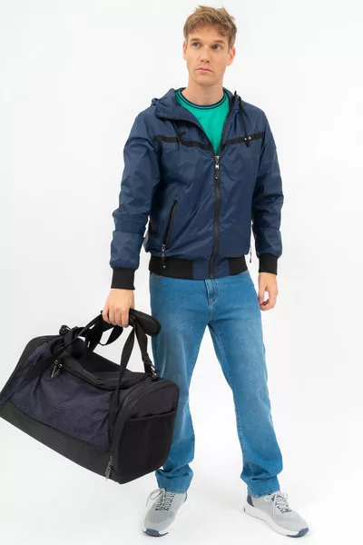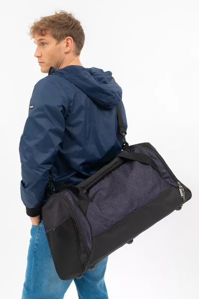 55X30X32 CM. Férfi textil sporttáska, utazótáska . Anyaga vízlepergető . Cipzáras zsebekkel . állítható, leszedhető vállpánttal . Gumicímkével és nyomott mintával díszítve.