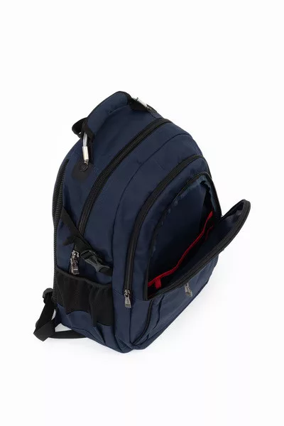 33x49x21 cm, 1,06 kg. Alapanyaga vízlepergeto. Mindkét oldalán hálós kulacstartó zseb. Légcsatornás hátlap. Három különálló cipzáros rekesz. Az elso rekeszben rendszerezo zsebek. Fémmel megerosített kézifogó. Laptoptartó: 26 X 38cm.