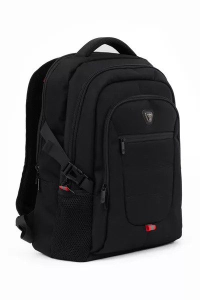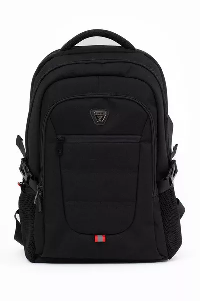34x46x22 cm, 0,68 kg. Alapanyaga vízlepergeto. Mindkét oldalán hálós zseb. Légcsatornás hátlap. Három különálló cipzáros rekesz. Az elso rekeszben rendszerezo zsebek. Boröndre rögzítheto. Laptoptartó: 26 X 33cm.