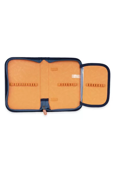 13,5x20 cm. Egyrekeszes nagyméretű tolltartó. Alapanyaga vízlepergető. Dinoszauruszos mintával. Kihajtható órarendtartóval. 28 ceruzahellyel.