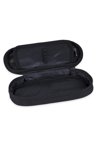 22,2x9 cm. Egyrekeszes kisméretű tolltartó. Alapanyaga vízlepergető. Fehér applikációval díszítve. Belül cipzáros hálós zsebbel. Kihajtható ceruzatartó 8 ceruzahellyel.