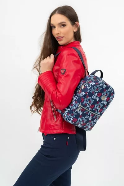 23X30X10 CM - női textil hátitáska - anyaga vízlepergető - cipzáras zsebekkel - állítható vállpántokkal - fémcímkével díszítve