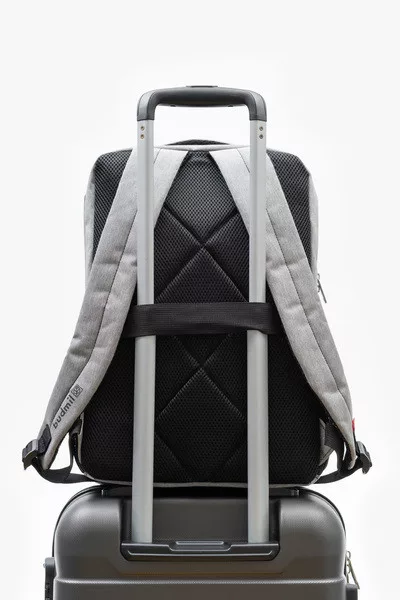 28x44x15 cm, 18L. Alapanyaga vízlepergető. Mindkét oldalán hálós kulacstartó zseb. Kettő különálló cipzáros rekesz. Elején kisebb cipzáros zsebek. A második rekeszben rendszerező zsebek. Laptop tartó. Bőröndre rögzíthető.