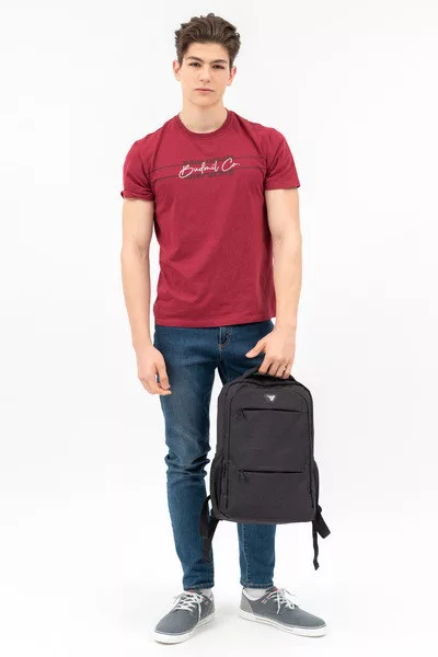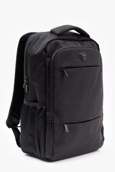 28x44x15 cm, 18L. Alapanyaga vízlepergető. Mindkét oldalán hálós kulacstartó zseb. Kettő különálló cipzáros rekesz. Elején kisebb cipzáros zsebek. A második rekeszben rendszerező zsebek. Laptop tartó. Bőröndre rögzíthető.